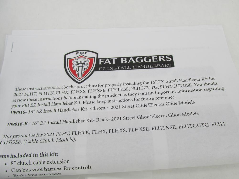 Fat Baggers EZ Install +8" Handlebar Extension Kit 21-23 Harley Touring 109016-B