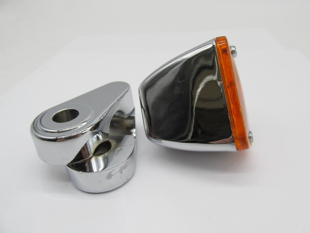 Harley Chrome Square Amber Lens Marker Light 5/8" Clamp 78-089