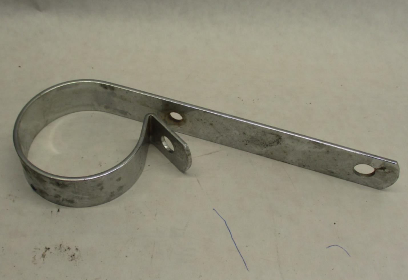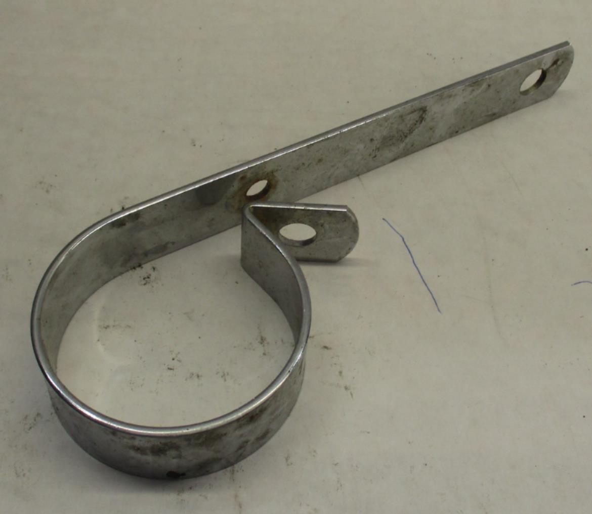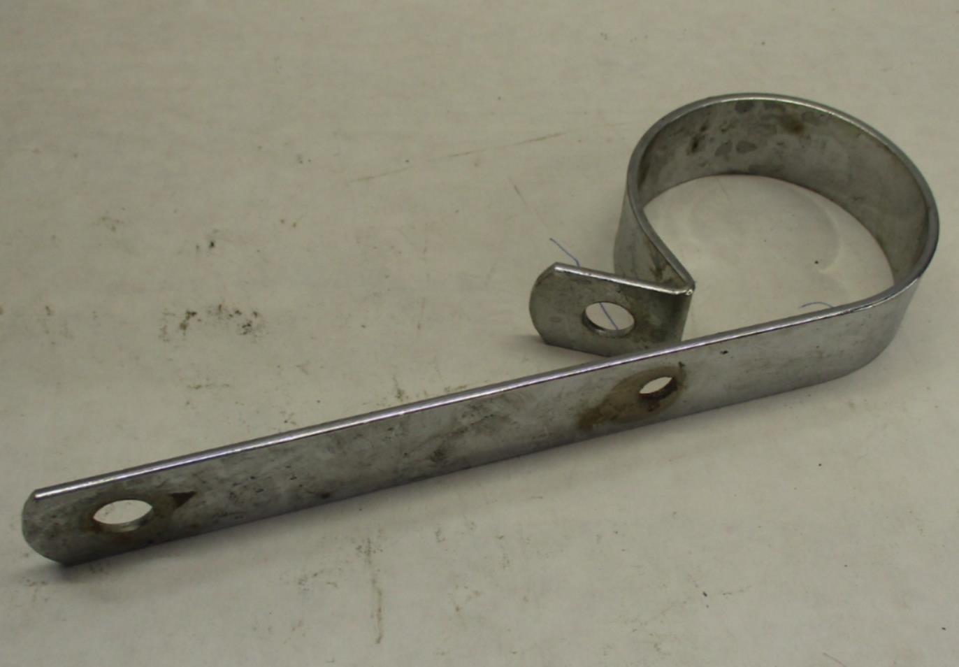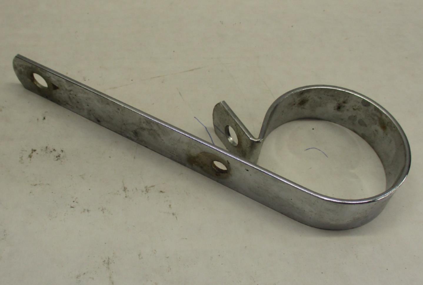 This is a used Chrome Exhaust Muffler Hanger Bracket