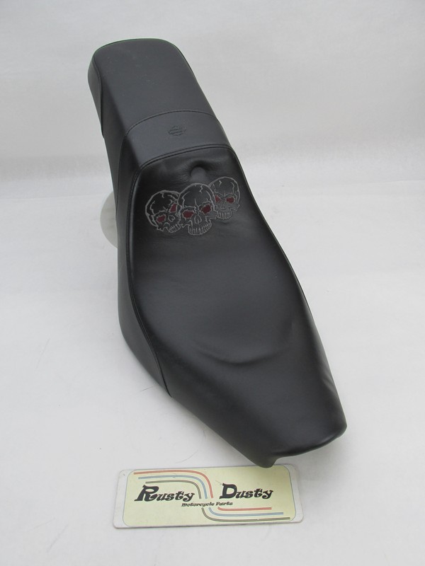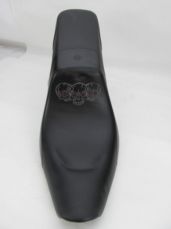 Harley-Davidson Dyna Custom Embroidered Skull Black Leather Seat