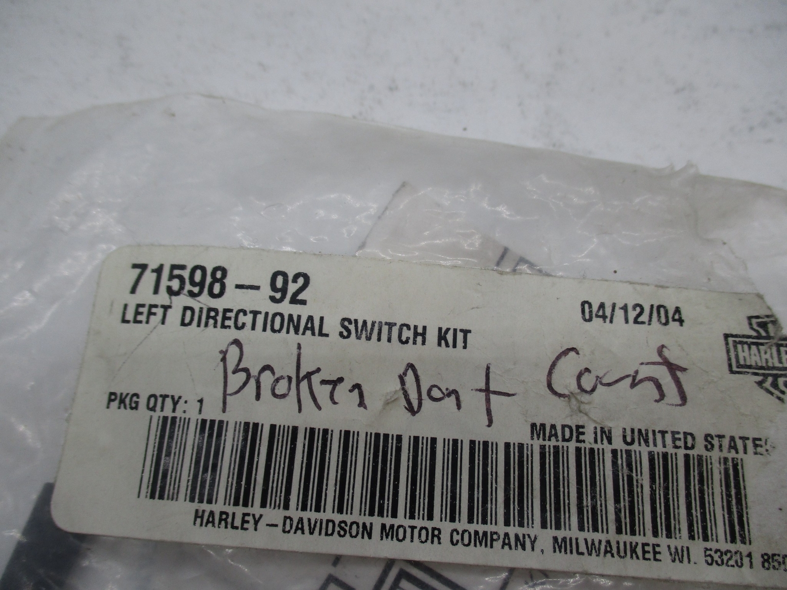 Harley Genuine Left Turn Signal Directional Switch Kit 71598-92 PARTS REPAIR