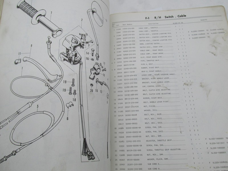Honda Official Factory 1972 SL350 K2 Parts Catalog Manual