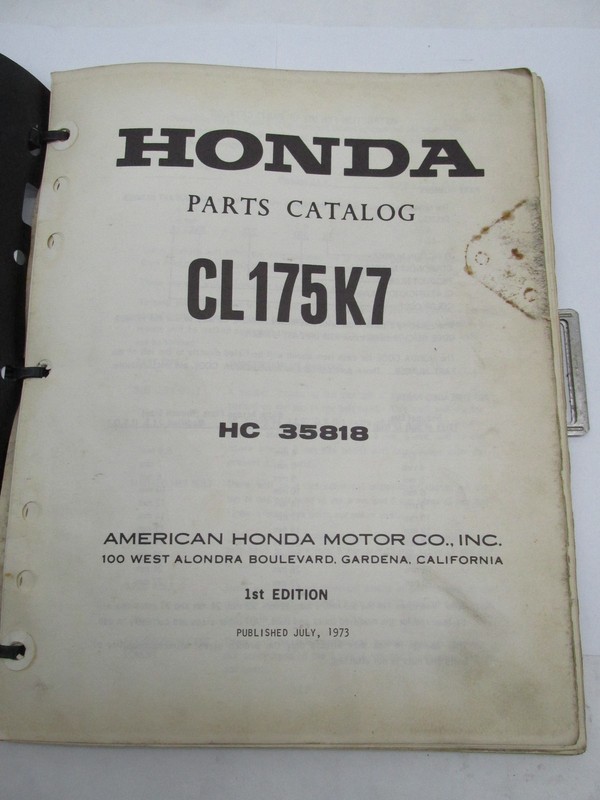 Honda Official Factory 1973 CL175 K7 Parts Catalog Manual