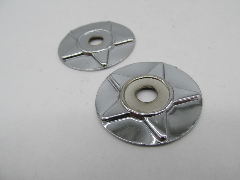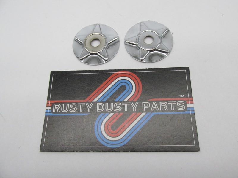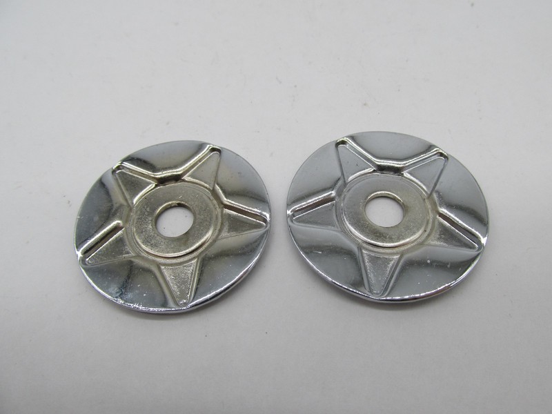 Set of (2) chrome star conchos commonly used on Harley-Davidson saddlebags, seats, and other leather accessories.