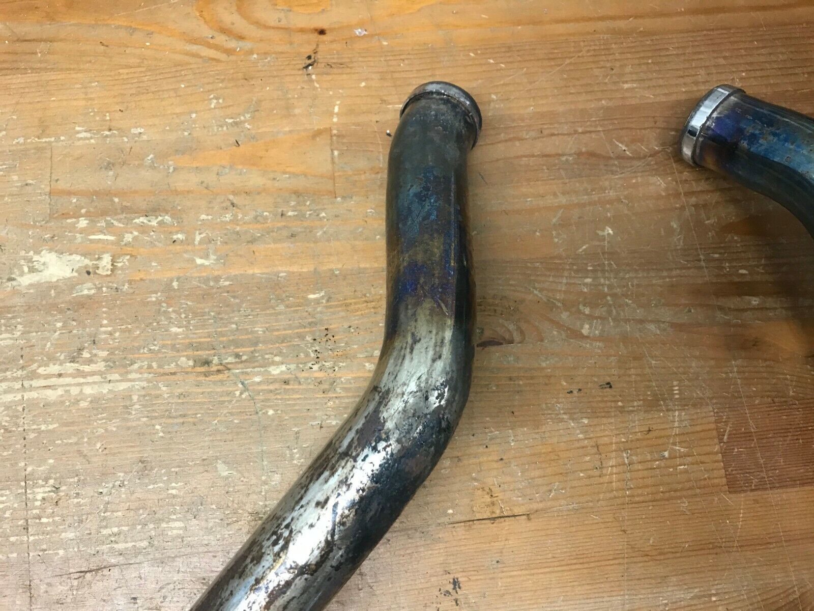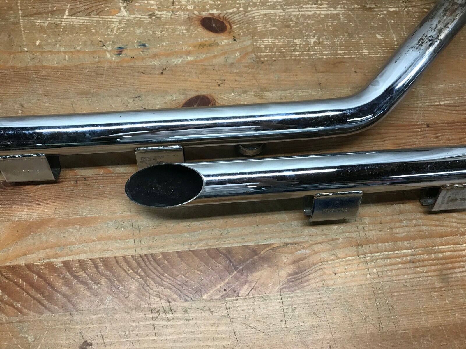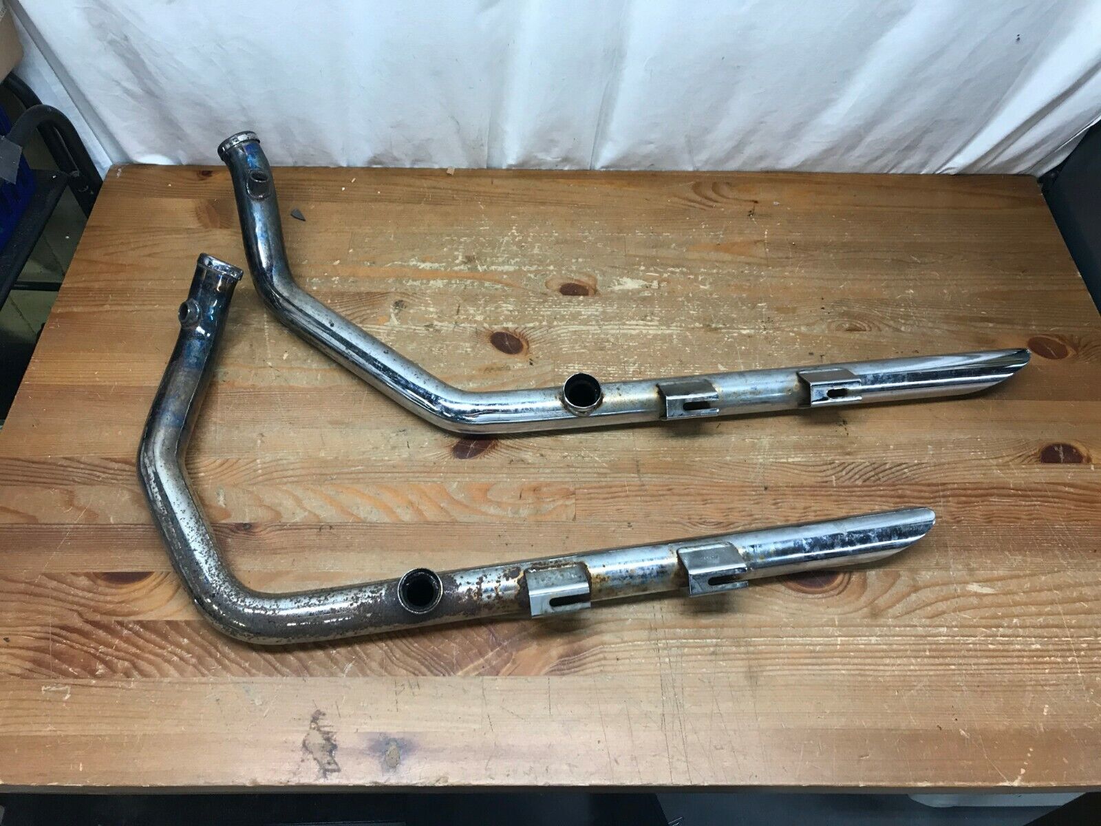 Exhaust is used and has some surface Patina, blemishes and discoloration.  Pipes are still in good usable condition.