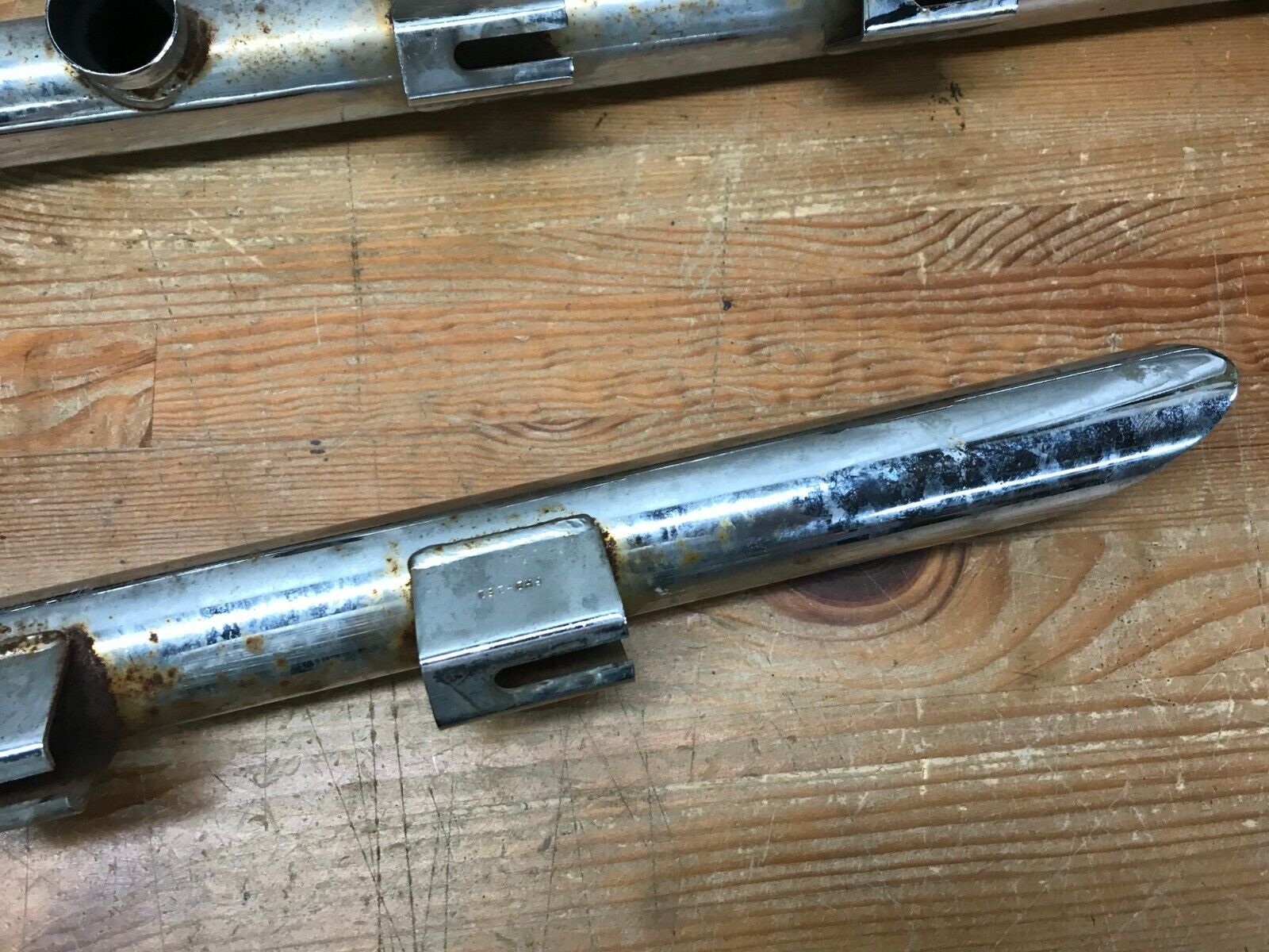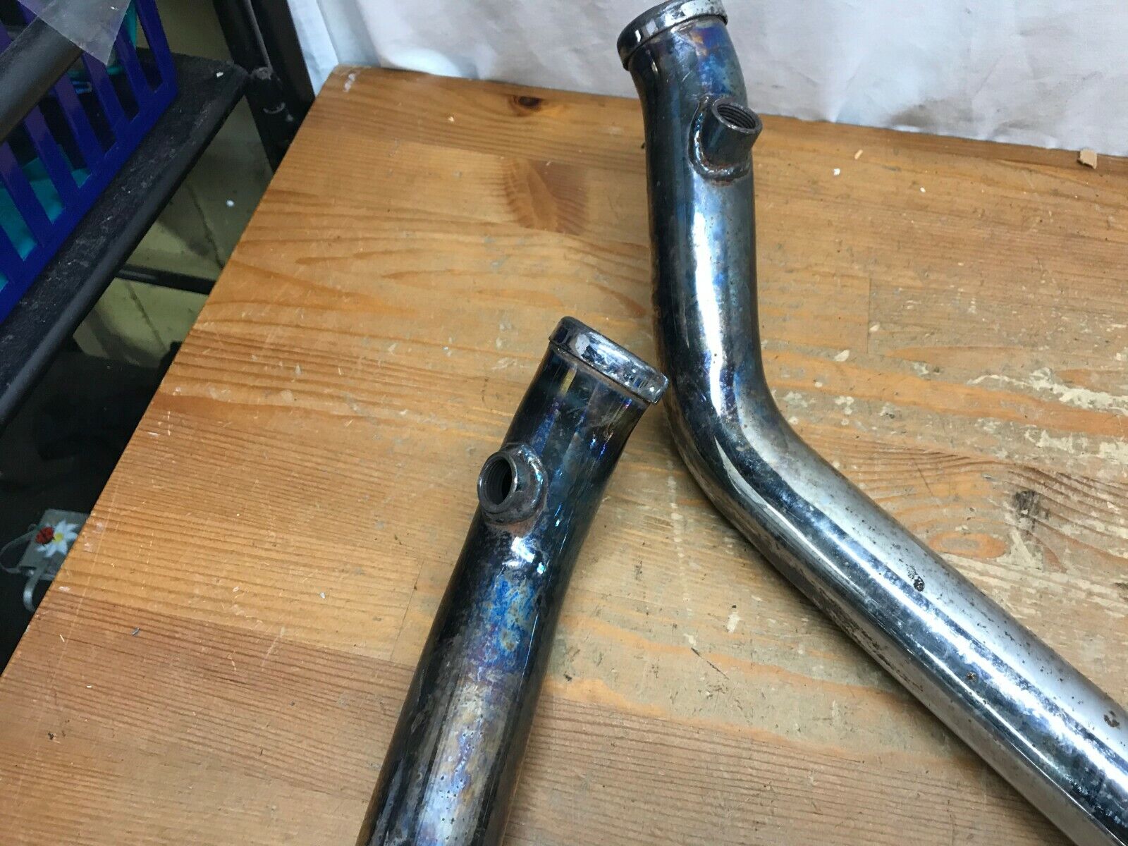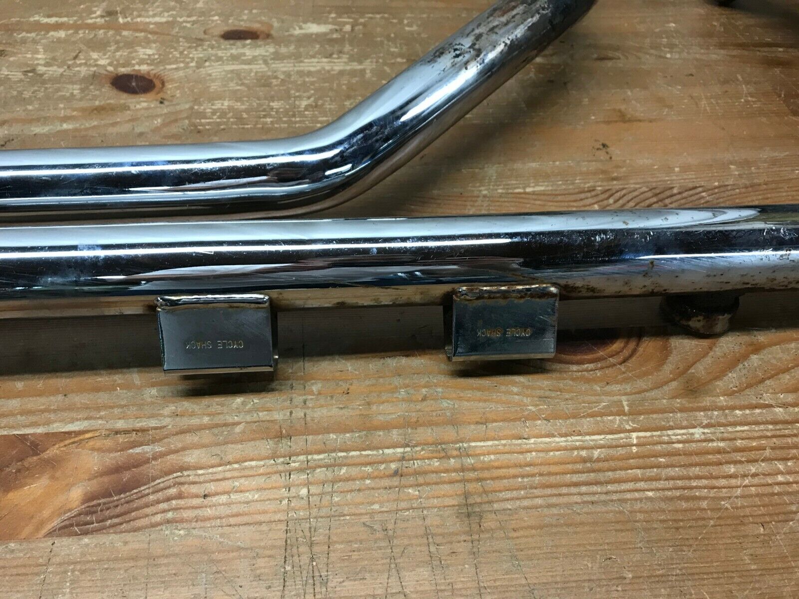 Exhaust is used and has some surface Patina, blemishes and discoloration.  Pipes are still in good usable condition.