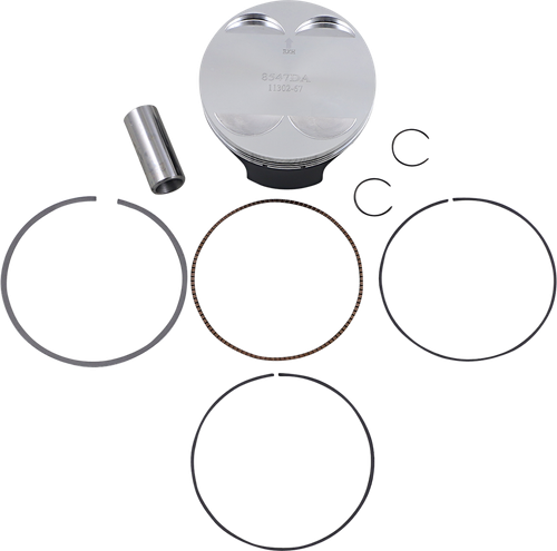 - Piston kits include forged pistons, rings, wrist pins and clips for a complete motor